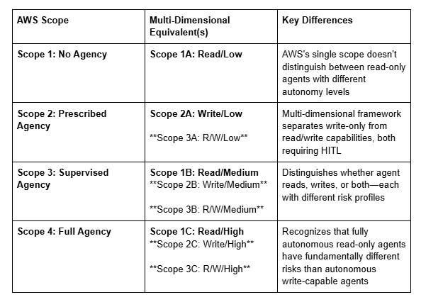 The goal is not to replace the AWS framework but to enhance it, providing organizations with the precision needed to implement appropriate security controls for their specific agentic AI deployments. As we collectively build the future of autonomous AI systems, these definitional refinements and multi-dimensional thinking will help ensure we do so safely and responsibly.