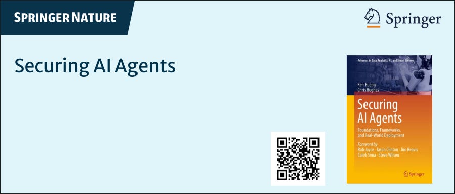 It is with great excitement that we announce the official release of our book, Securing AI Agents: Foundations, Frameworks, and Real-World Deployment, co-authored with the brilliant @Chris Hughes and published by Springer. This timely guide is now available for anyone building, deploying, or securing the next generation of agentic AI systems.